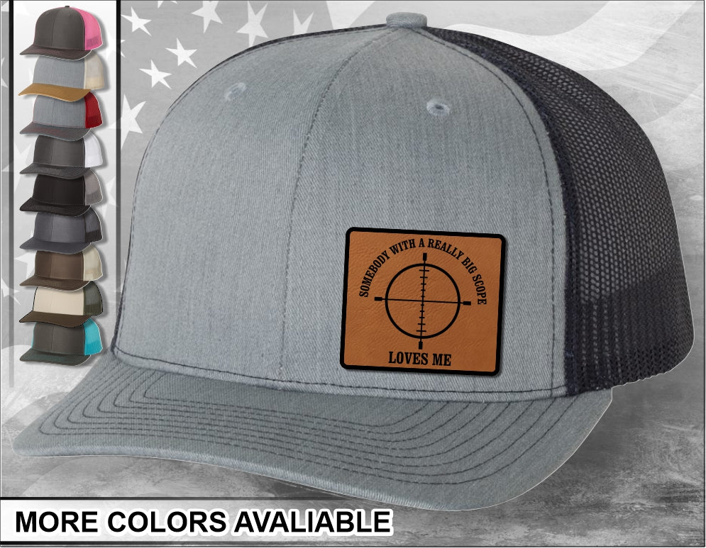 Big Scope Loves Me Laser Engraved Leather Patch Trucker Hat