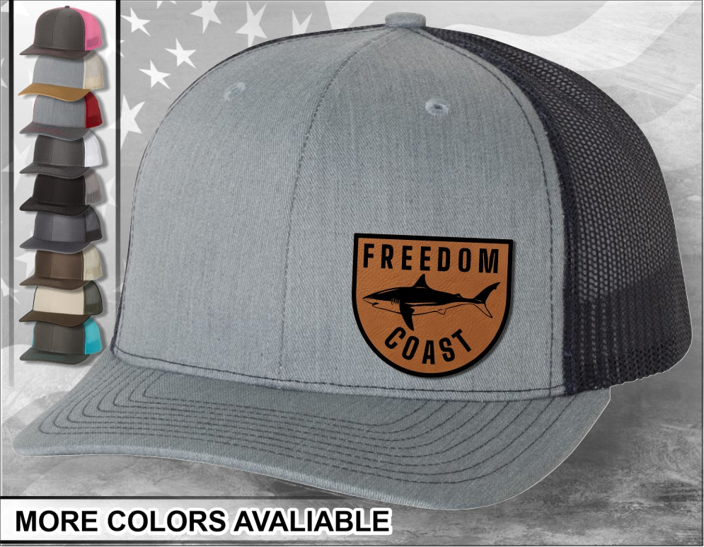 Freedom Coast Shark Laser Engraved Leather Patch Trucker Hat