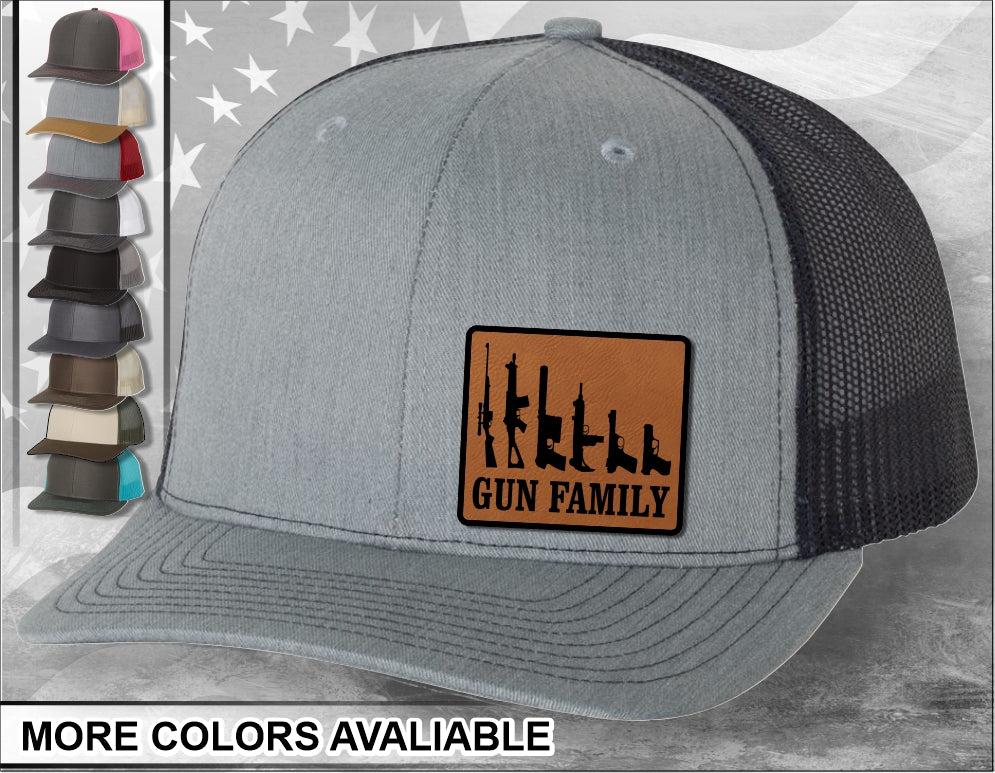 Gun Family Laser Engraved Leather Patch Trucker Hat