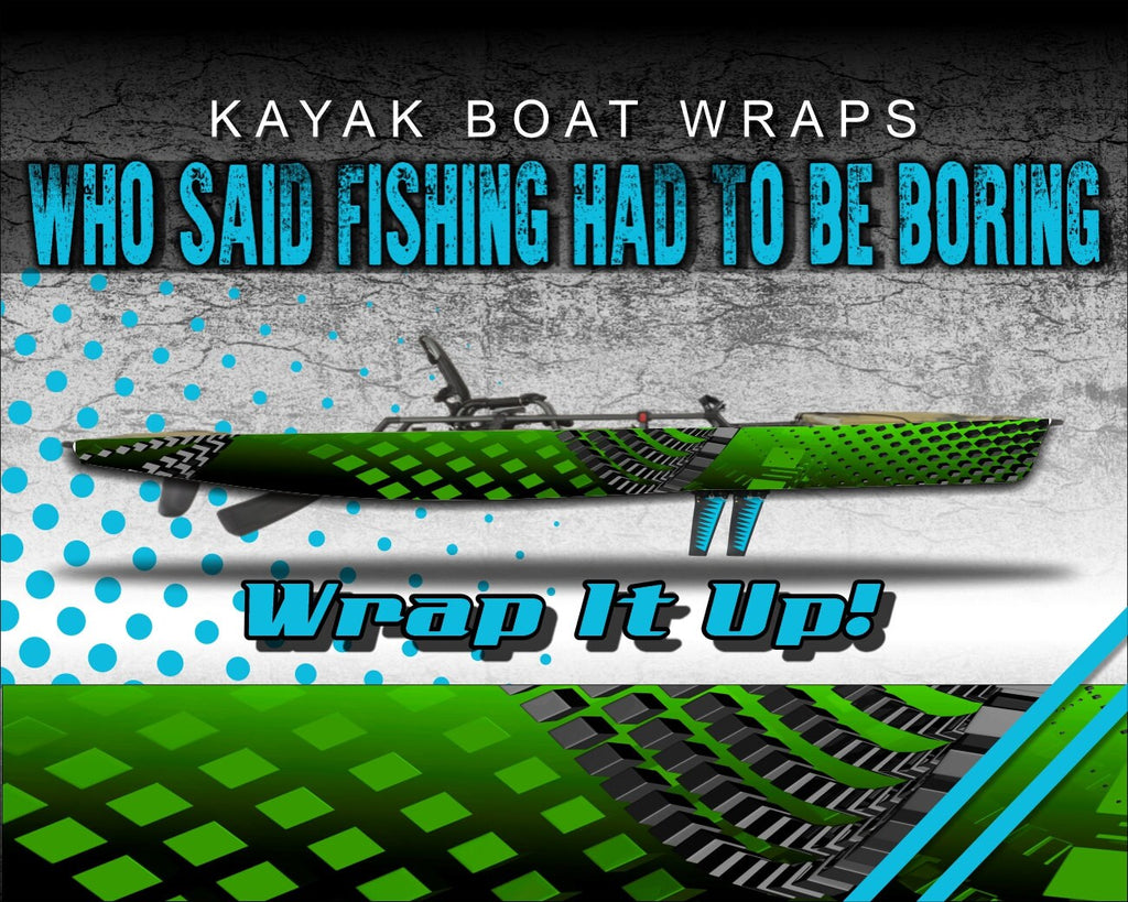 Who said fishing had to be boring?! Showcase your style with our universally sized kayak wraps and make your kayak look great. Or use them to give an old yak that fresh new look again! Since they are a universal size, they fit almost any brand kayak on the market. After extensive testing with this specialty wrap film we have been able to deliver a product specifically for the kayak community that is durable, waterproof, affordable and easy to apply. Once these materials were selected, we fired up the creativity and started producing these eye catching graphics. Each design detail has been meticulous rendered and assembled for vibrant, rich color ranges as a non-repeating pattern. There will not be any “cut and paste” effect with these designs. Our kayak wrap kits are digitally printed on professional grade, waterproof wrap film with industry leading durability. We use the BEST in vinyl application materials that implement the latest in ink and air release vinyl technology to make your wraps. Our graphics are digitally printed at 1080dpi for the highest resolution possible, brightest colors and an Ultra HD look. We then go the extra mile and apply a tough, clear laminate over the entire wrap kit. This laminating process provides extra protection as well as excellent UV and abrasion resistance and extended outdoor use. This means our graphics will stand up to the extremes of the outdoor environment, last longer and look great! This high performance waterproof wrap film has a grey removable, repositionable adhesive technology and has no visible air channels. These air channels help with adhesion, installation and longevity, as well as removability and will not leave a sticky residue left on your kayak if you ever decided to remove them. These graphics are easy to apply and easy to remove, just peel of the backing, apply and trim!