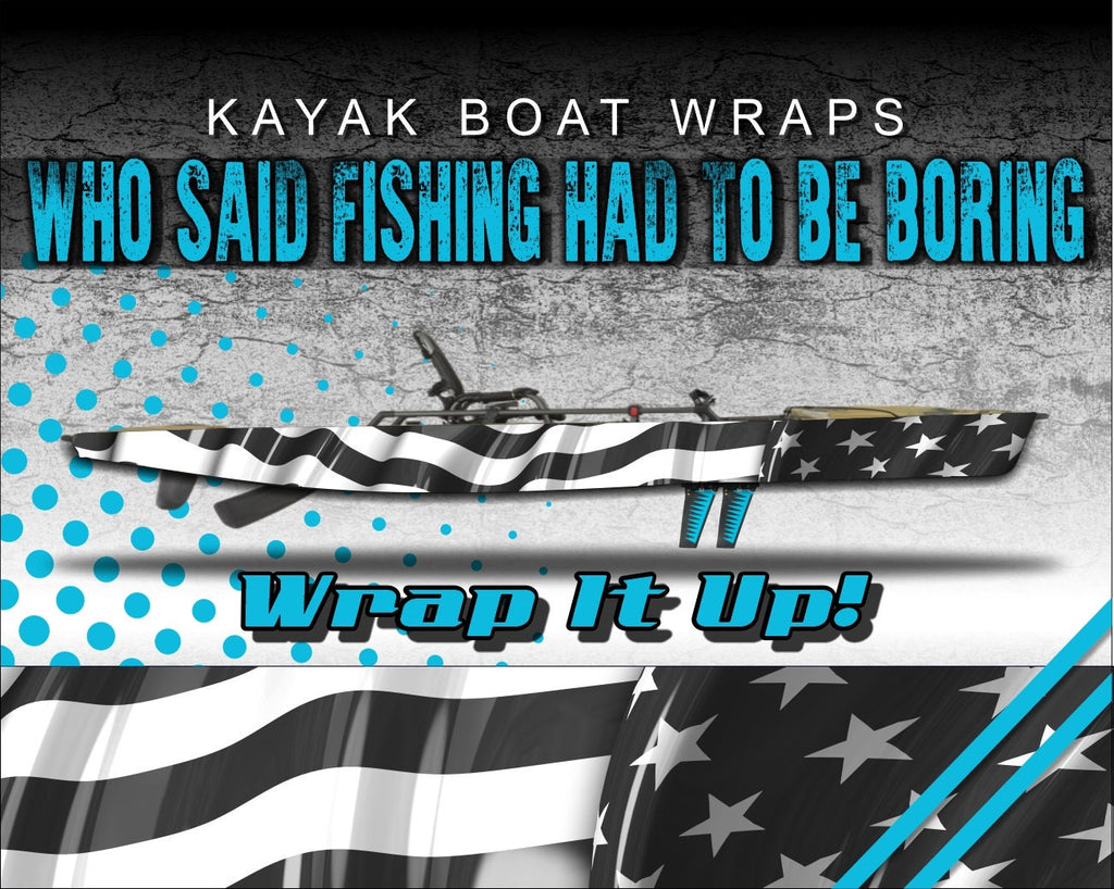 American Flag Black and White Kayak Vinyl Wrap Kit Graphic Decal/Sticker 12ft and 14ft