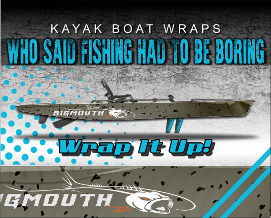 Who said fishing had to be boring?! Showcase your style with our universally sized kayak wraps and make your kayak look great. Or use them to give an old yak that fresh new look again! Since they are a universal size, they fit almost any brand kayak on the market. After extensive testing with this specialty wrap film we have been able to deliver a product specifically for the kayak community that is durable, waterproof, affordable and easy to apply. Once these materials were selected, we fired up the creativity and started producing these eye catching graphics. Each design detail has been meticulous rendered and assembled for vibrant, rich color ranges as a non-repeating pattern. There will not be any “cut and paste” effect with these designs. Our kayak wrap kits are digitally printed on professional grade, waterproof wrap film with industry leading durability. We use the BEST in vinyl application materials that implement the latest in ink and air release vinyl technology to make your wraps. Our graphics are digitally printed at 1080dpi for the highest resolution possible, brightest colors and an Ultra HD look. We then go the extra mile and apply a tough, clear laminate over the entire wrap kit. This laminating process provides extra protection as well as excellent UV and abrasion resistance and extended outdoor use. This means our graphics will stand up to the extremes of the outdoor environment, last longer and look great! This high performance waterproof wrap film has a grey removable, repositionable adhesive technology and has no visible air channels. These air channels help with adhesion, installation and longevity, as well as removability and will not leave a sticky residue left on your kayak if you ever decided to remove them. These graphics are easy to apply and easy to remove, just peel of the backing, apply and trim!