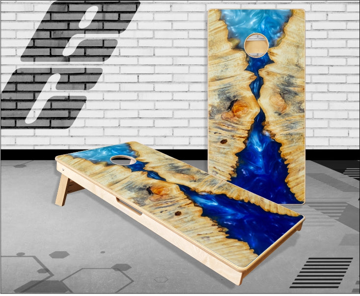 Blue Epoxy Wood Cornhole Boards