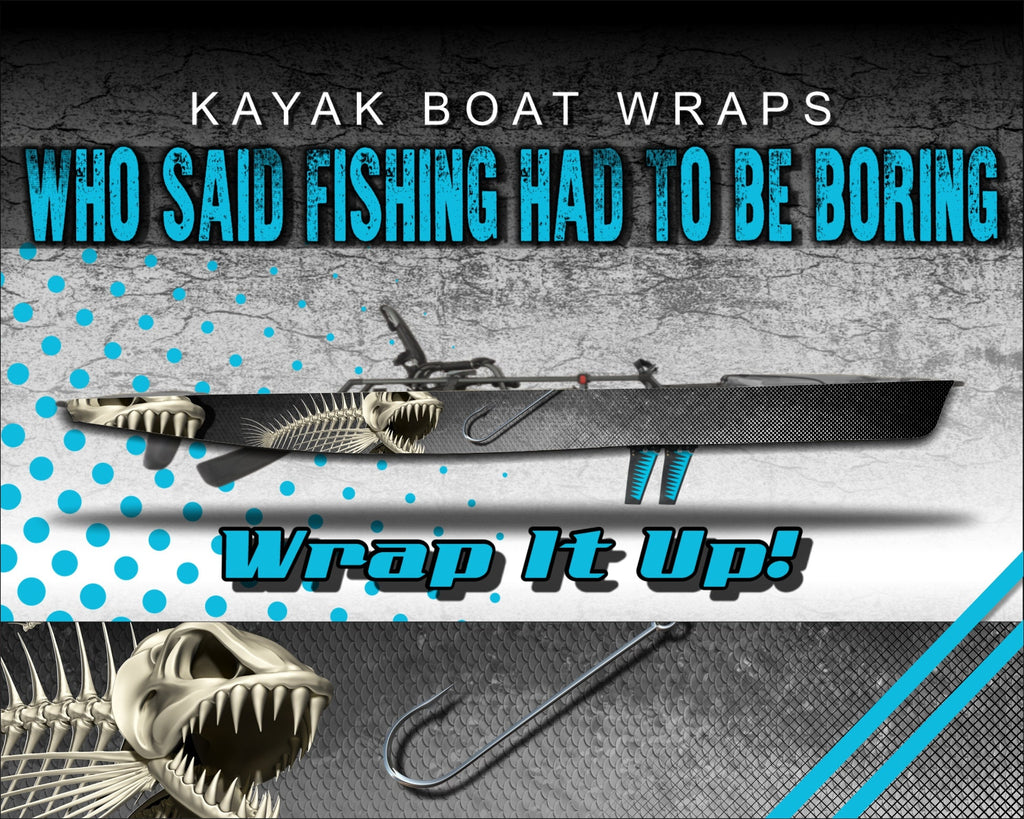 Who said fishing had to be boring?! Showcase your style with our universally sized kayak wraps and make your kayak look great. Or use them to give an old yak that fresh new look again! Since they are a universal size, they fit almost any brand kayak on the market. After extensive testing with this specialty wrap film we have been able to deliver a product specifically for the kayak community that is durable, waterproof, affordable and easy to apply. Once these materials were selected, we fired up the creativity and started producing these eye catching graphics. Each design detail has been meticulous rendered and assembled for vibrant, rich color ranges as a non-repeating pattern. There will not be any “cut and paste” effect with these designs. Our kayak wrap kits are digitally printed on professional grade, waterproof wrap film with industry leading durability. We use the BEST in vinyl application materials that implement the latest in ink and air release vinyl technology to make your wraps. Our graphics are digitally printed at 1080dpi for the highest resolution possible, brightest colors and an Ultra HD look. We then go the extra mile and apply a tough, clear laminate over the entire wrap kit. This laminating process provides extra protection as well as excellent UV and abrasion resistance and extended outdoor use. This means our graphics will stand up to the extremes of the outdoor environment, last longer and look great! This high performance waterproof wrap film has a grey removable, repositionable adhesive technology and has no visible air channels. These air channels help with adhesion, installation and longevity, as well as removability and will not leave a sticky residue left on your kayak if you ever decided to remove them. These graphics are easy to apply and easy to remove, just peel of the backing, apply and trim!