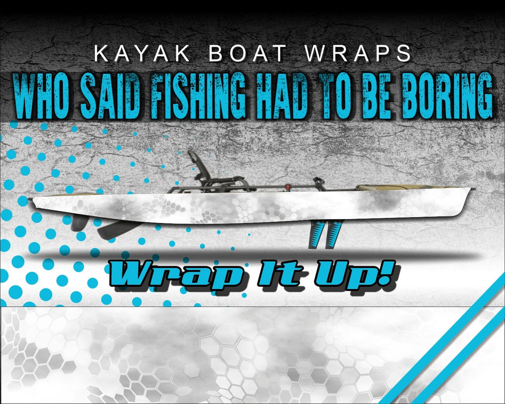 Who said fishing had to be boring?! Showcase your style with our universally sized kayak wraps and make your kayak look great. Or use them to give an old yak that fresh new look again! Since they are a universal size, they fit almost any brand kayak on the market. After extensive testing with this specialty wrap film we have been able to deliver a product specifically for the kayak community that is durable, waterproof, affordable and easy to apply. Once these materials were selected, we fired up the creativity and started producing these eye catching graphics. Each design detail has been meticulous rendered and assembled for vibrant, rich color ranges as a non-repeating pattern. There will not be any “cut and paste” effect with these designs. Our kayak wrap kits are digitally printed on professional grade, waterproof wrap film with industry leading durability. We use the BEST in vinyl application materials that implement the latest in ink and air release vinyl technology to make your wraps. Our graphics are digitally printed at 1080dpi for the highest resolution possible, brightest colors and an Ultra HD look. We then go the extra mile and apply a tough, clear laminate over the entire wrap kit. This laminating process provides extra protection as well as excellent UV and abrasion resistance and extended outdoor use. This means our graphics will stand up to the extremes of the outdoor environment, last longer and look great! This high performance waterproof wrap film has a grey removable, repositionable adhesive technology and has no visible air channels. These air channels help with adhesion, installation and longevity, as well as removability and will not leave a sticky residue left on your kayak if you ever decided to remove them. These graphics are easy to apply and easy to remove, just peel of the backing, apply and trim!