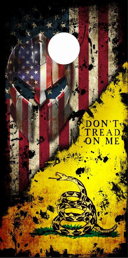 Dont Tread on Me Spartan Grunge Flag Cornhole Wrap