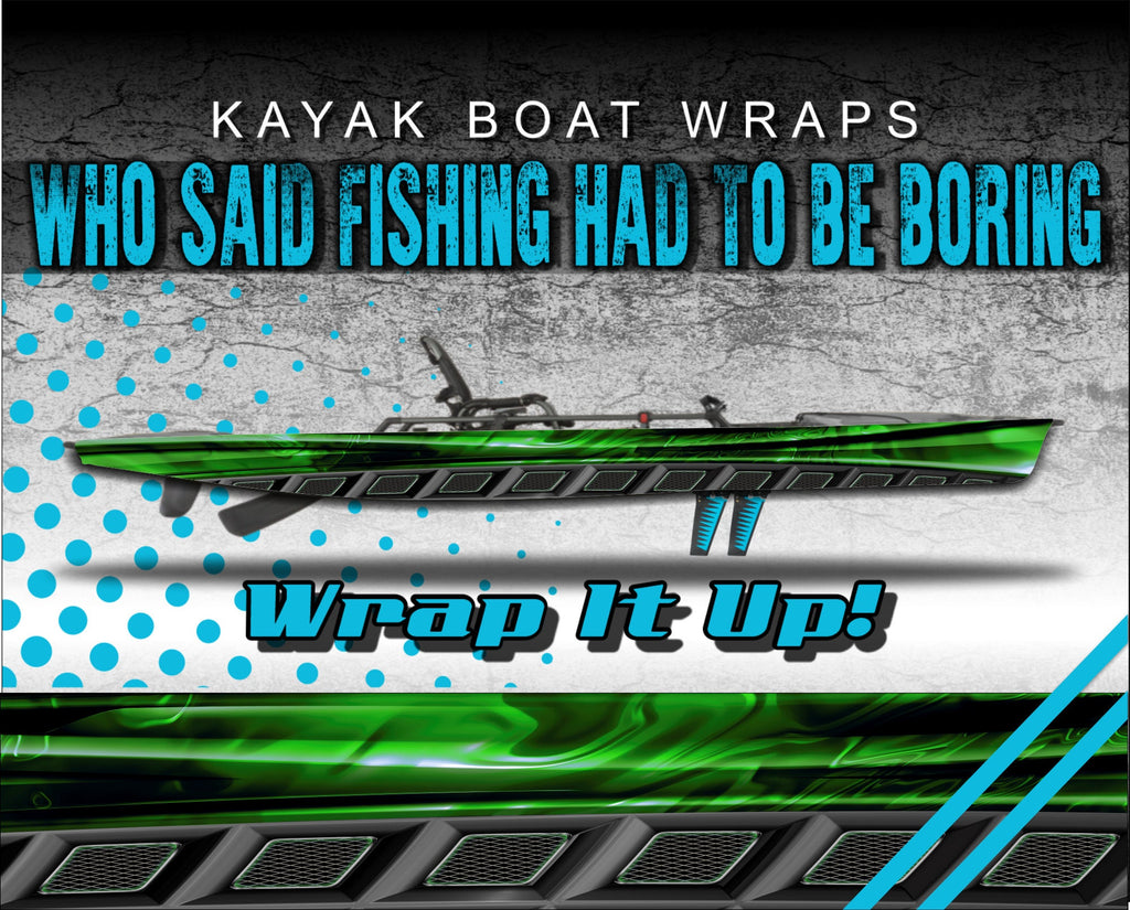Who said fishing had to be boring?! Showcase your style with our universally sized kayak wraps and make your kayak look great. Or use them to give an old yak that fresh new look again! Since they are a universal size, they fit almost any brand kayak on the market. After extensive testing with this specialty wrap film we have been able to deliver a product specifically for the kayak community that is durable, waterproof, affordable and easy to apply. Once these materials were selected, we fired up the creativity and started producing these eye catching graphics. Each design detail has been meticulous rendered and assembled for vibrant, rich color ranges as a non-repeating pattern. There will not be any “cut and paste” effect with these designs. Our kayak wrap kits are digitally printed on professional grade, waterproof wrap film with industry leading durability. We use the BEST in vinyl application materials that implement the latest in ink and air release vinyl technology to make your wraps. Our graphics are digitally printed at 1080dpi for the highest resolution possible, brightest colors and an Ultra HD look. We then go the extra mile and apply a tough, clear laminate over the entire wrap kit. This laminating process provides extra protection as well as excellent UV and abrasion resistance and extended outdoor use. This means our graphics will stand up to the extremes of the outdoor environment, last longer and look great! This high performance waterproof wrap film has a grey removable, repositionable adhesive technology and has no visible air channels. These air channels help with adhesion, installation and longevity, as well as removability and will not leave a sticky residue left on your kayak if you ever decided to remove them. These graphics are easy to apply and easy to remove, just peel of the backing, apply and trim!