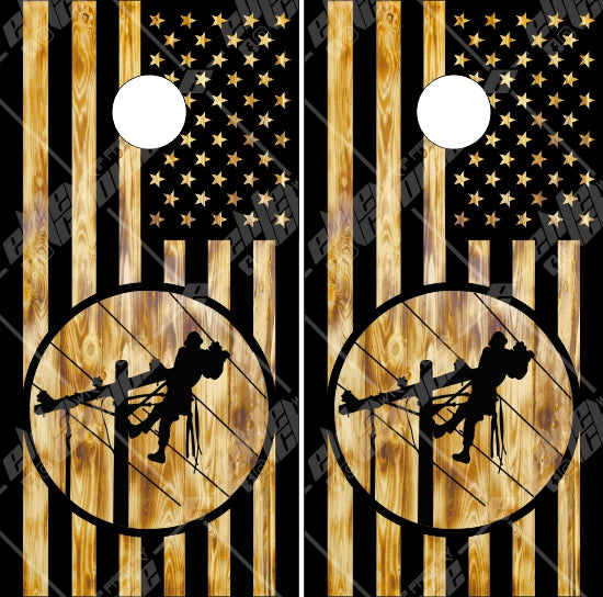 Lineman Burnt Flag 2 Cornhole Wrap
