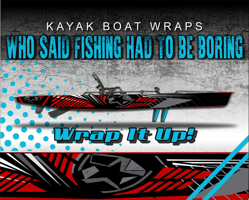 Who said fishing had to be boring?! Showcase your style with our universally sized kayak wraps and make your kayak look great. Or use them to give an old yak that fresh new look again! Since they are a universal size, they fit almost any brand kayak on the market. After extensive testing with this specialty wrap film we have been able to deliver a product specifically for the kayak community that is durable, waterproof, affordable and easy to apply. Once these materials were selected, we fired up the creativity and started producing these eye catching graphics. Each design detail has been meticulous rendered and assembled for vibrant, rich color ranges as a non-repeating pattern. There will not be any “cut and paste” effect with these designs. Our kayak wrap kits are digitally printed on professional grade, waterproof wrap film with industry leading durability. We use the BEST in vinyl application materials that implement the latest in ink and air release vinyl technology to make your wraps. Our graphics are digitally printed at 1080dpi for the highest resolution possible, brightest colors and an Ultra HD look. We then go the extra mile and apply a tough, clear laminate over the entire wrap kit. This laminating process provides extra protection as well as excellent UV and abrasion resistance and extended outdoor use. This means our graphics will stand up to the extremes of the outdoor environment, last longer and look great! This high performance waterproof wrap film has a grey removable, repositionable adhesive technology and has no visible air channels. These air channels help with adhesion, installation and longevity, as well as removability and will not leave a sticky residue left on your kayak if you ever decided to remove them. These graphics are easy to apply and easy to remove, just peel of the backing, apply and trim!