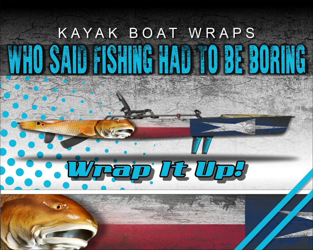 Red Fish Texas Flag Kayak Vinyl Wrap Kit Graphic Decal/Sticker 12ft and 14ft