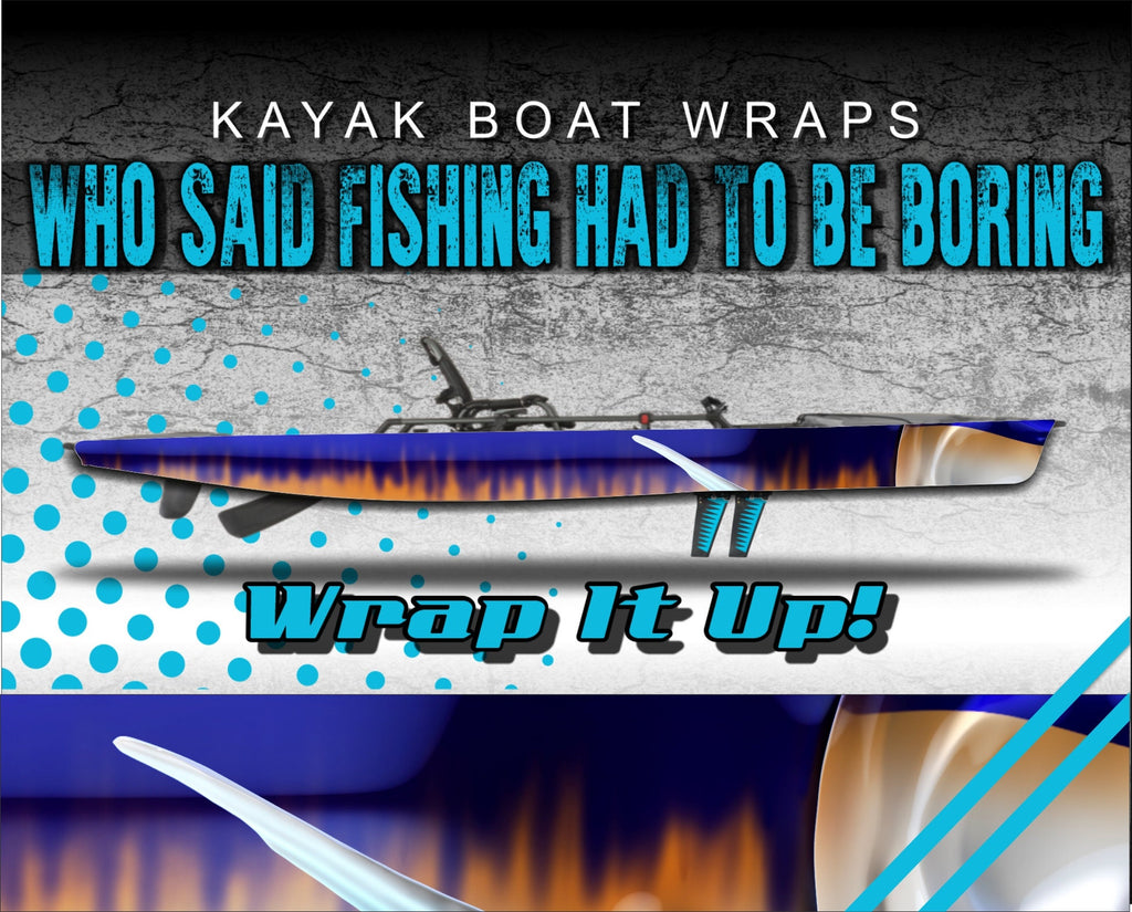 Who said fishing had to be boring?! Showcase your style with our universally sized kayak wraps and make your kayak look great. Or use them to give an old yak that fresh new look again! Since they are a universal size, they fit almost any brand kayak on the market. After extensive testing with this specialty wrap film we have been able to deliver a product specifically for the kayak community that is durable, waterproof, affordable and easy to apply. Once these materials were selected, we fired up the creativity and started producing these eye catching graphics. Each design detail has been meticulous rendered and assembled for vibrant, rich color ranges as a non-repeating pattern. There will not be any “cut and paste” effect with these designs. Our kayak wrap kits are digitally printed on professional grade, waterproof wrap film with industry leading durability. We use the BEST in vinyl application materials that implement the latest in ink and air release vinyl technology to make your wraps. Our graphics are digitally printed at 1080dpi for the highest resolution possible, brightest colors and an Ultra HD look. We then go the extra mile and apply a tough, clear laminate over the entire wrap kit. This laminating process provides extra protection as well as excellent UV and abrasion resistance and extended outdoor use. This means our graphics will stand up to the extremes of the outdoor environment, last longer and look great! This high performance waterproof wrap film has a grey removable, repositionable adhesive technology and has no visible air channels. These air channels help with adhesion, installation and longevity, as well as removability and will not leave a sticky residue left on your kayak if you ever decided to remove them. These graphics are easy to apply and easy to remove, just peel of the backing, apply and trim!