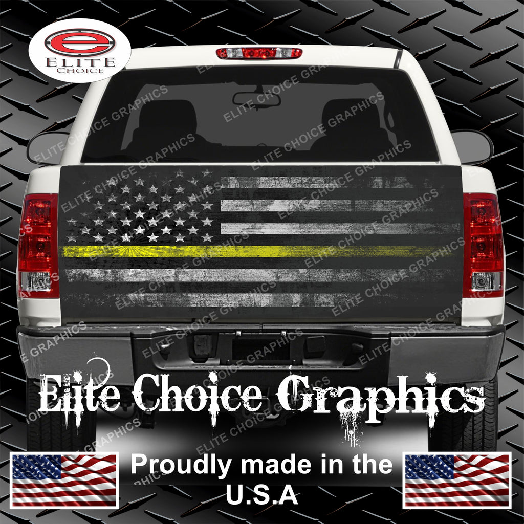 Tow Truck Distressed Thin Yellow Line Flag Tailgate Wrap