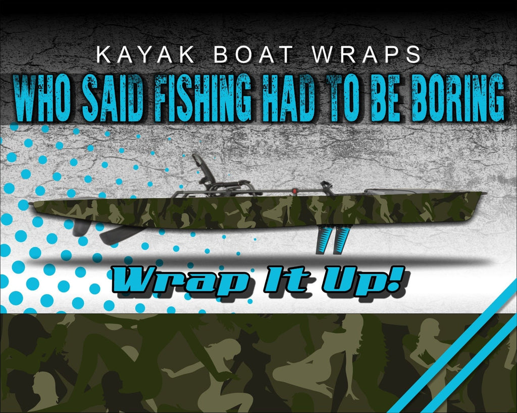 Trucker Girl Army Camo Kayak Vinyl Wrap Kit Graphic Decal/Sticker 12ft and 14ft