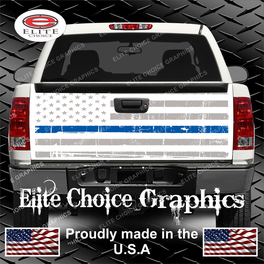 White Distressed Thin Blue Line Flag Tailgate Wrap